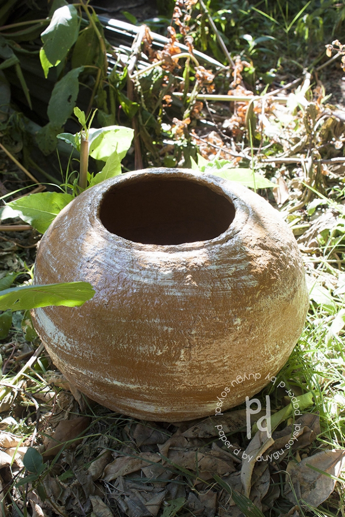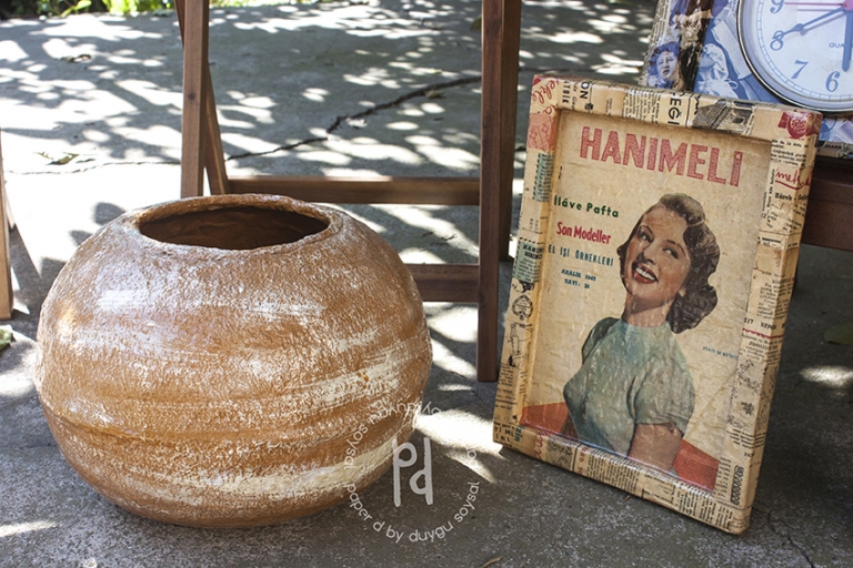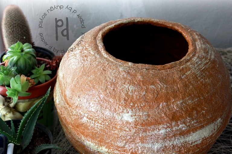Geri dönüştürülmüş kağıtlardan elle şekillendirilerek hazırlanmış dekoratif büyük küp.